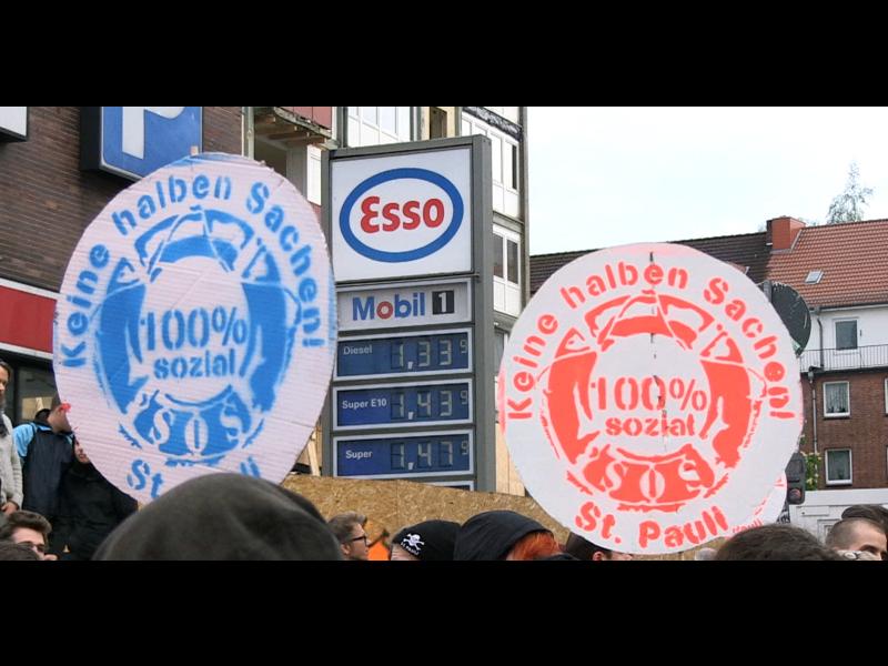Die Filmemacher*innen Irene Bude, Olaf Sobczak und Steffen Jörg begleiteten über 2 Jahre lang den Kampf der Bewohner*innen der „Esso-Häuser" und ihrer Unterstützer*innen im Hamburger Stadtteil St. Pauli gegen deren Abriss: in den Häusern und Wohnungen, bei Demonstrationen, Aktionen und Stadtteilversammlungen, bei Architekten in Paris und Venedig, bei Pressekonferenzen und Gesprächen mit Politiker*innen. Der Kampf machte die Häuser über Hamburg hinaus bekannt, denn sie stehen für einen Verdrängungsprozess, der vielerorts stattfindet sowie den Widerstand dagegen.