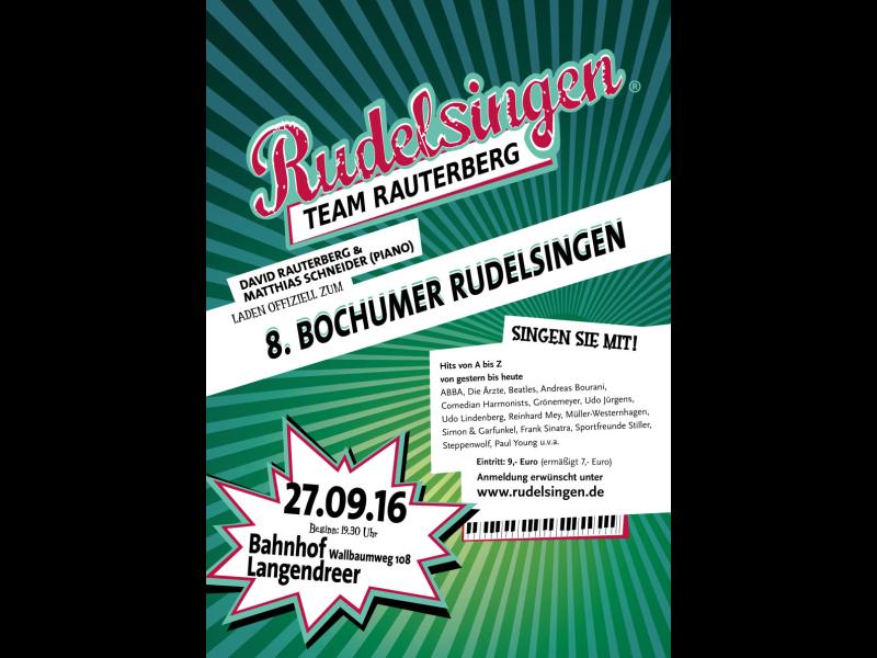 In lockerer Atmosphäre treffen sich Menschen jeden Alters und singen gemeinsam Hits und Gassenhauer von damals bis heute. Dabei werden sie live vom Sänger und Pianisten begleitet. Die Texte werden per Beamer an die Wand projiziert. Beim 10. Bochumer Jubiläums Rudelsingen am 20.12. wird es natürlich auch entsprechend vorweihnachtlich.