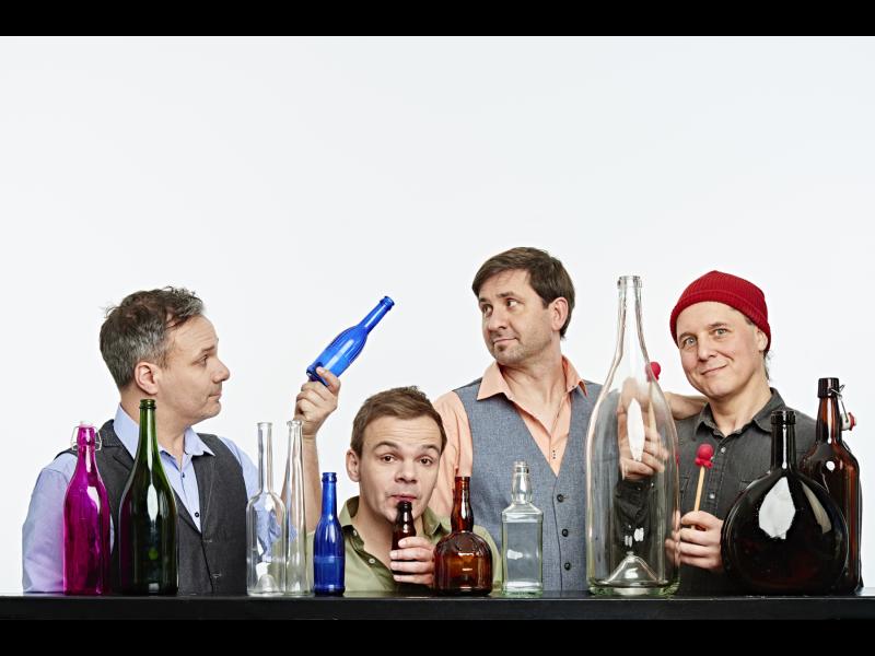 Leg das Smartphone zur Seite und schau dir live an, was man mit den Überresten der letzten Silvesterparty Geniales anstellen kann. Komm zu Flaschmob, dem neuen Programm von GlasBlasSing. Bestaune die Cokecaster-Flaschengitarre, das Flachmanninoff-Xylophon, die Jelzin-Orgel oder die Wasserspender-Floor-Toms, die so schön BUMM machen, wenn man mit der grünen Perrier-Keule draufhaut.
