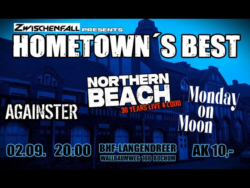Ganz frischen Stoff liefern AGAINSTER, die nach einigen Umbesetzungen mit anspruchsvollem Hardcore die verschiedenen Stile der Lauter-Schneller-Fraktion angenehm hörbar weiter entwickelt haben und ihre Energie nur schwer im Zaum halten können. MONDAY ON MOON braut schon seit längerer Zeit ein eigenes Süppchen aus allem, was man mit drei Gitarren, drei Stimmen, Bass und Schlagzeug in einer Garage so basteln kann und dabei gute Laune macht. Und schließlich feiern wir zwar nicht 60 Jahre Stones oder 40 Jahre Hosen, aber immerhin satte 30 Jahre NORTHERN BEACH mit schnörkellosem Punkrock at its best. Jederzeit ein gern gesehener Opener für Szenegrößen wie The Members, Movement, Spitfires und anderen hat das Trio schon oft die Lunte für einen Knaller am Abend gelegt. Nach einigen Jahren Bühnenpause sind alle heiß wie Frittenfett und schließlich ist auch noch Wochenende...wenn das kein Grund zum Feiern ist!