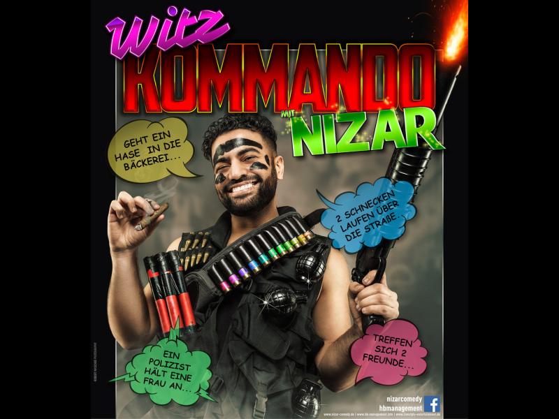 NIZAR - das ist ein Mann, der sein Talent zum Beruf gemacht hat. Der deutsche Komiker besticht nicht nur durch grandiose Jokes, sondern ebenso sehr durch eine starke Ausstrahlung, großartige Gesten und sein herzliches, lautes Lachen.