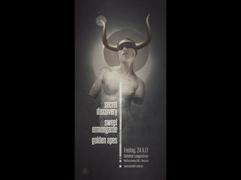 Mit den Bochumer Urgesteinen Secret Discovery, einer der besten Nachwuchsbands im Gothrock Bereich, Sweet Ermengarde, und den einzigartigen Berlinern Wave-Rockern Golden Apes stehen euch drei der fulminantesten Bands gegenüber, die das Zwischenfall-Team hat aufbieten können. Die Aftershowparty bestreiten DJ Tuxedomoon (Lost Sounds) und DJ Carsten (Höllentanz) mit ihrem jeweiligen Best-of Programm.