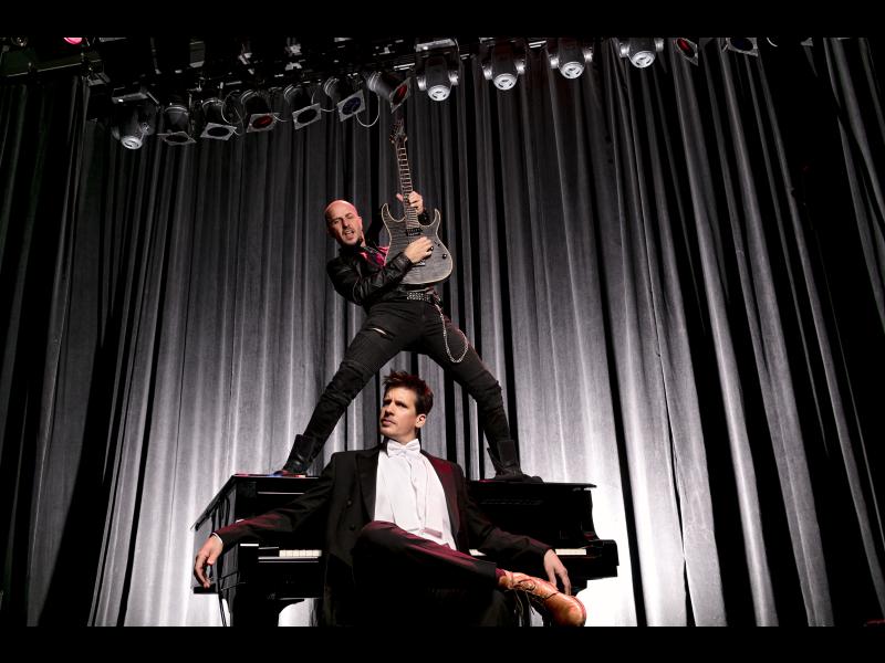Denn ohne einen Funken Zurückhaltung reißen die beiden alle Grenzen von Musikstilen ein und erfinden etwas absolut Neues – ein Kabarettkonzert.
